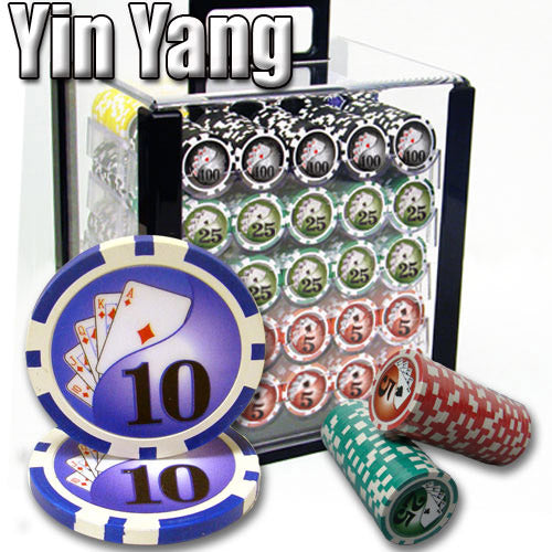 This is the 1000 piece Yin Yang 13.5 gram poker chip set with an acrylic carrier. This set includes 1000 of the clay-composite Yin Yang poker chips and ten acrylic chip trays.