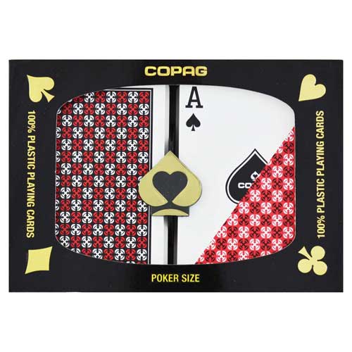 These 100% plastic cards come in poker size with a regular index. Each set comes with a red and a black deck, along with a plastic protective case to keep the cards safe.