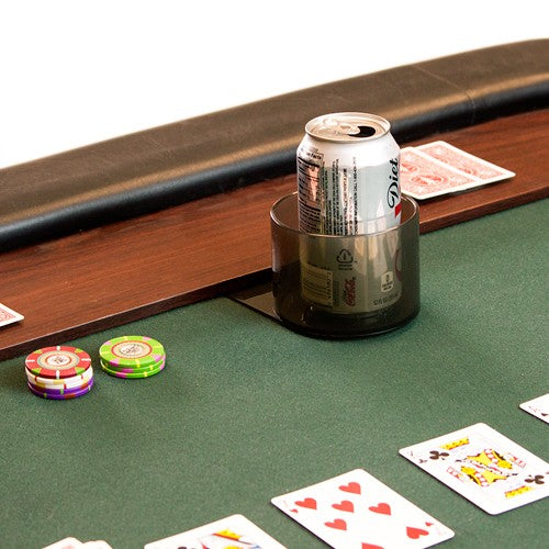 If your poker table doesn't have spaces for cup holders, this slide-under, smoke-colored, plastic cup holder is the perfect solution.