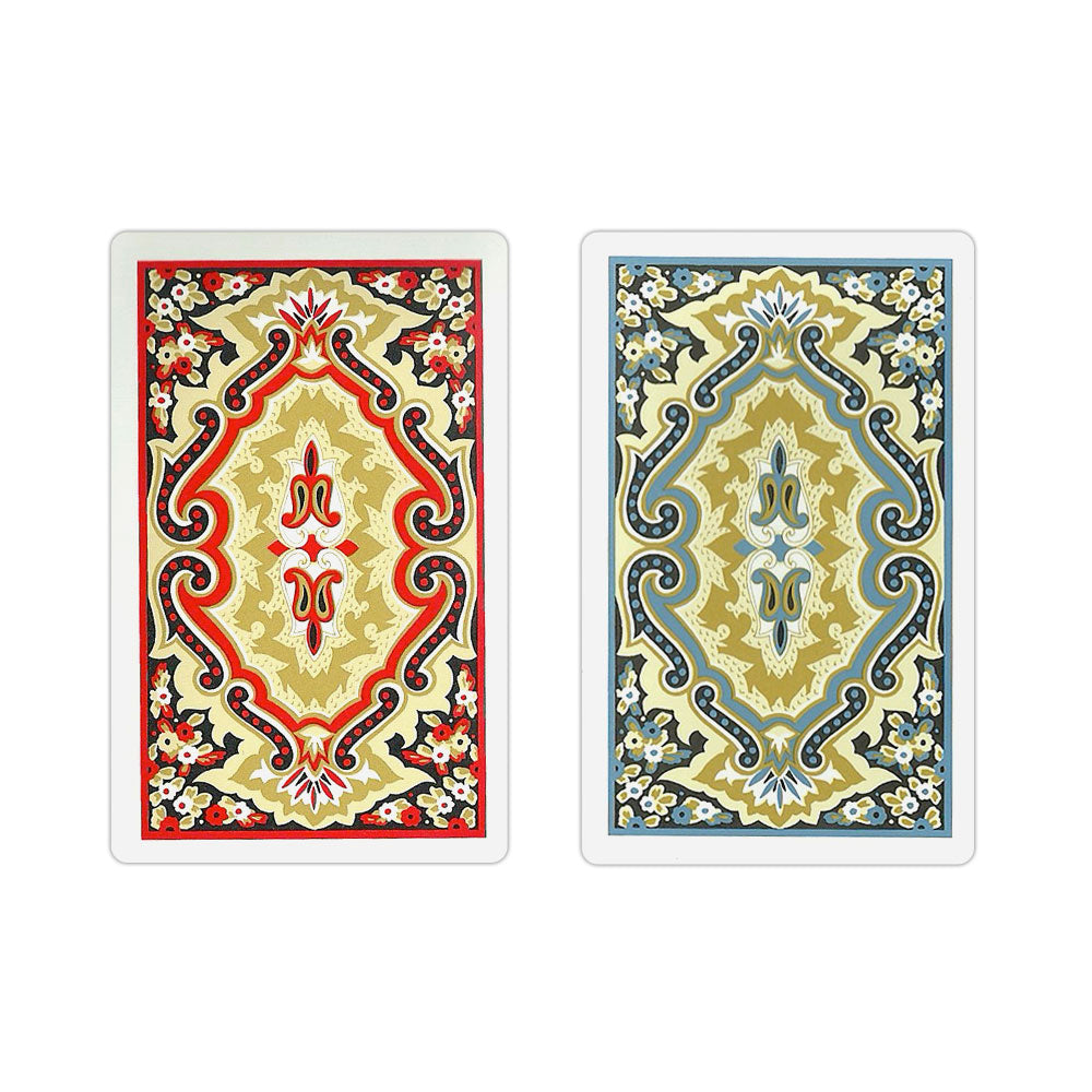 This set of KEM Paisley Bridge Size (2.25" x 3.5") 100% cellulose acetate plastic cards includes 2 decks of Paisley series playing cards and a protective plastic case.