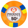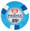 Phoenix Card Room poker chips are top-of-the line casino-grade clay poker chips that don't use any plastics or polymers. Unlike most poker chips on the market, each Phoenix chip is 100% clay, like all the best vintage casino chips of yesteryear.