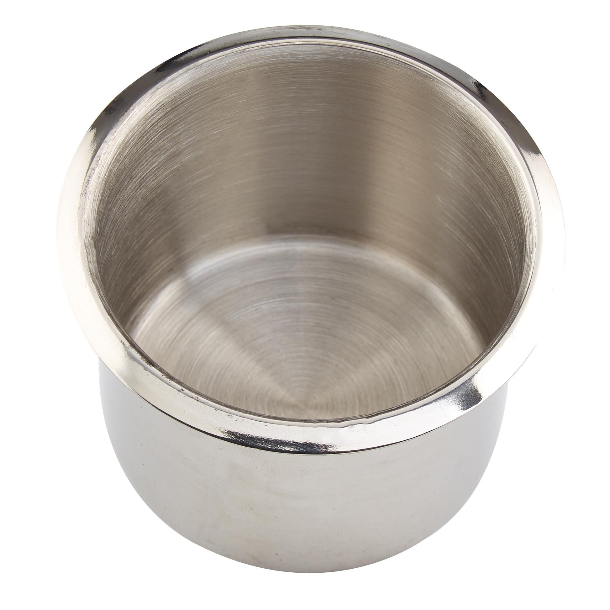 Durable and rust proof, each cup holder drops right into your table. Each cup holder measures 3 3/16 inches in diameter and is 2 5/16 inches tall. The holes in your table should be between 2 3/4"" and 3 1/8"" in diameter.
